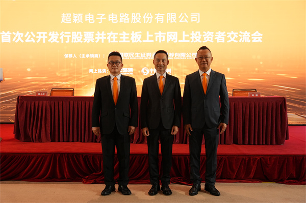 此次超颖电子电路股份有限公司首次公开发行股票并在上海证券交易所主板上市的网上路演即将结束。今天与各位投资者和所有关心超颖电子的朋友们相聚在此、真诚沟通,共同度过了一段愉快的时光。在此,我诚挚感谢各位投资者以及所有朋友们对超颖电子的热心关注和热切期望。