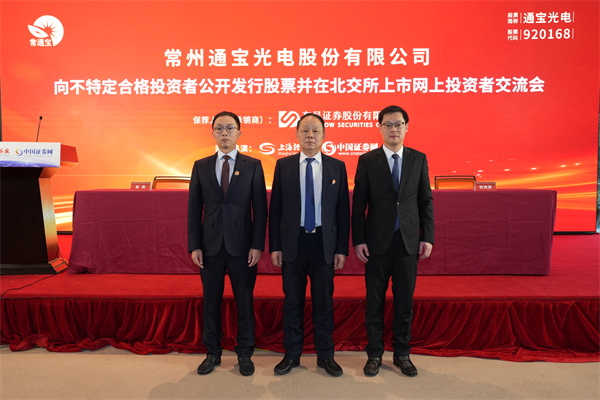 最后,预祝常州通宝光电股份有限公司向不特定合格投资者公开发行股票并在北交所上市的网上路演圆满成功!谢谢大家!