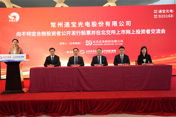 非常荣幸能够参加常州通宝光电股份有限公司向不特定合格投资者公开发行股票并在北交所上市的网上路演。我谨代表东吴证券股份有限公司,对所有参与本次网上交流会的嘉宾和投资者表示热烈的欢迎!对长期以来,一直关心、支持通宝光电的各界朋友表示衷心地感谢!